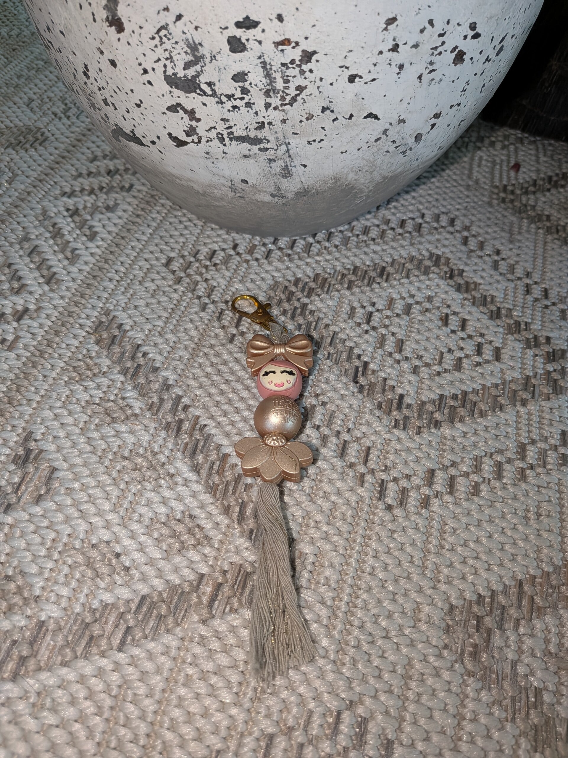 Sleutelhanger met een goud strikje popje van geluk